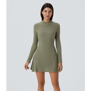 Halara Halara 罗纹立领长袖连衣裙