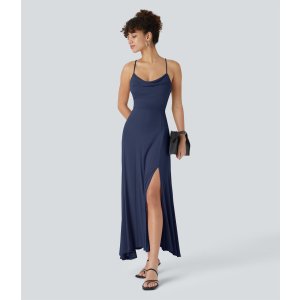 Halara Halara 方领无袖连衣裙 罗纹开叉