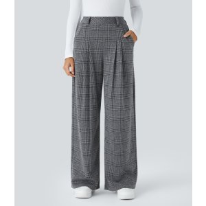 Halara 高腰格纹阔腿裤 女款