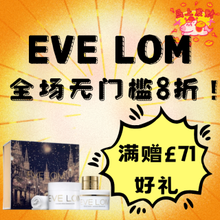 - EVE LOM 现有 新年狂促,全场无门槛8折,折扣码VALERIA20